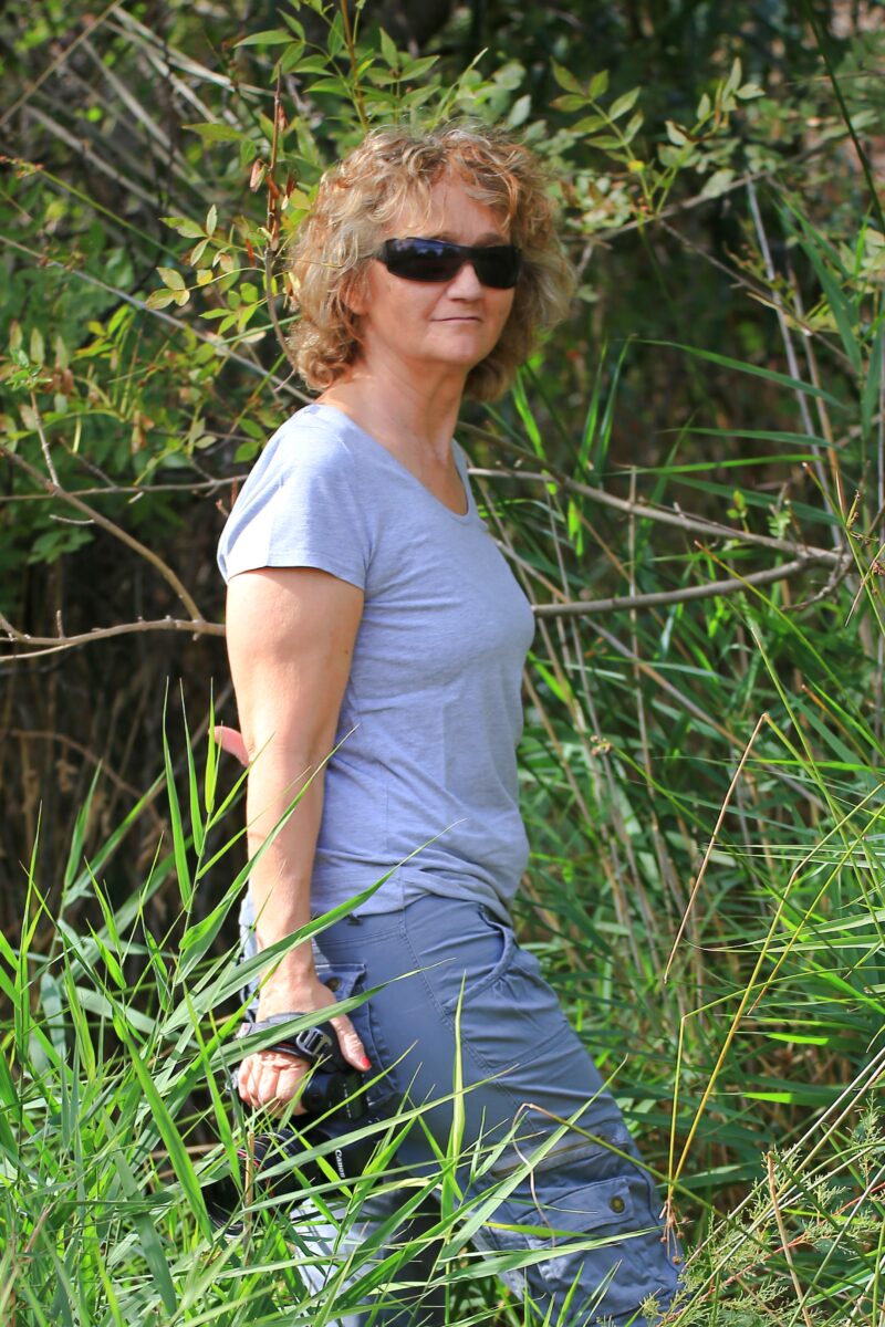 Cathy et moi formons une équipe bien rodée. Nous voyageons toujours en « self drive », je conduis puis photographie et Cathy est aux jumelles et tient mes boitiers et objectifs à portée de main. Son assistance m’est précieuse car lorsque je conduis, même très lentement ou que je photographie une scène, mon attention est focalisée sur une partie de ce qui nous entoure. Dans ces instants qui peuvent êtres longs, Cathy fait voyager son regard et m’indique certaines scènes qui pourraient faire de belles images mais que je ne vois pas à ces moments. L’exemple le plus marquant étant un léopard immobile à quelques mètres de nous que je n’avais pas vu car trop absorbé par la conduite sur une piste défoncée. Souvent il nous arrive de surprendre un animal en mouvement et de devoir faire des « travelings avant ou arrière » Cathy tient le volant d’une main et gère la direction, je gère la vitesse tout en photographiant l’animal.
